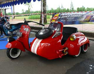 "Initially there was no sidecar. Original Vespa in Italy too. Sidecar Variations in Italy most of the right motor, while the sidecar enthusiasts in Indonesia put it on the left engine," added a member VBSD Koco, a club for lovers Vespa in seputaran BSD Tangerang .